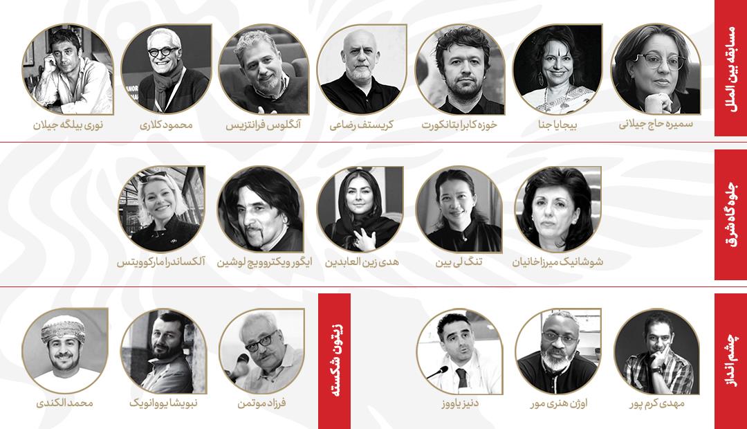 ایران جشنواره: ۱۸ داور ایرانی و خارجی فیلمهای حاضر در چهار بخش از جشنواره جهانی فیلم فجر را داوری میکنند.